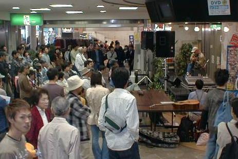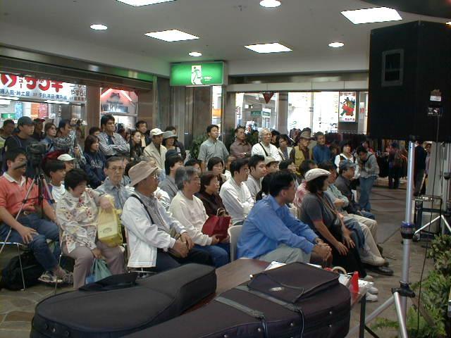 | いよいよ岸部さんの登場。無料のライブであっても、決して手を抜かない演奏は、さすがでした。 | 岸部さんの演奏中は終始観客があふれていました。 |