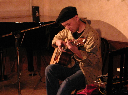 | 岸部眞明さんライブ 2002年10月12日 午後2時〜4時(新星堂前)、午後6時半〜10時(キッチン・パタータ) |