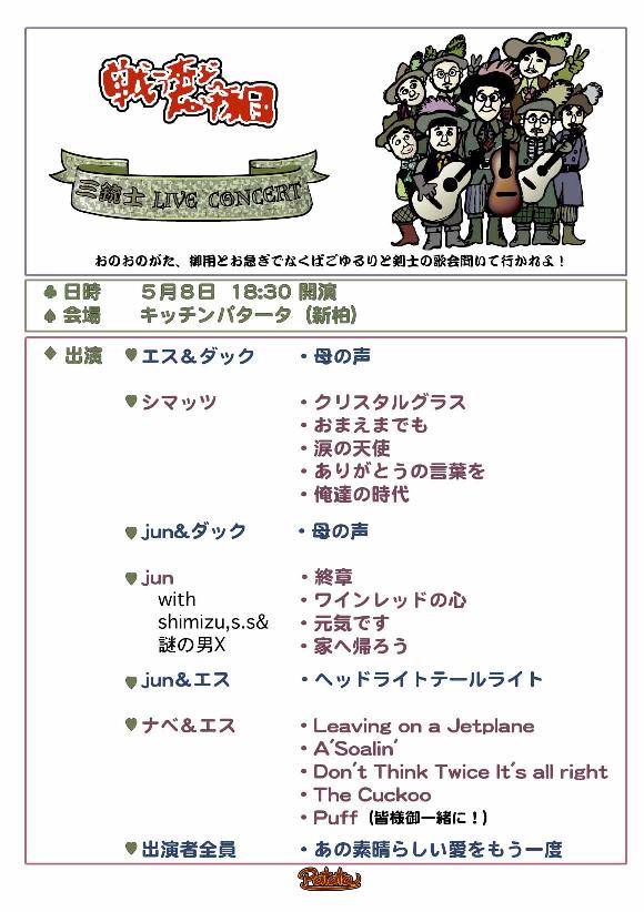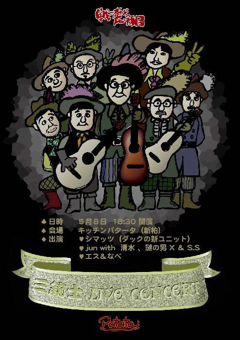 ダックさん・シマさん・junさん・なべさん・エスさんに、IKUZOさん・清水さん・SSさんがサポートに加わったライブです。