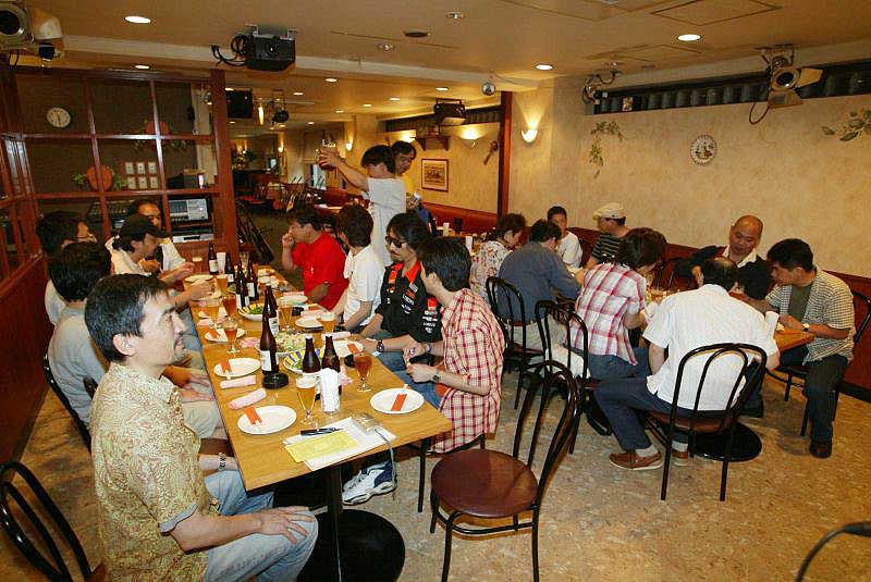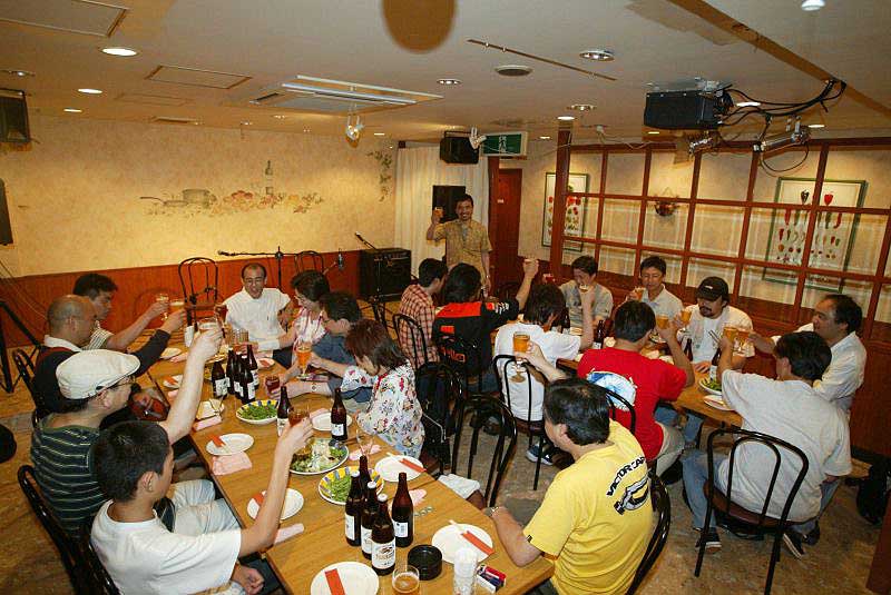 | 午後6時、乾杯で始まりました。12時間近くのロングラン、エネルギーを補給して完走目指して、がんばりましょう! |
