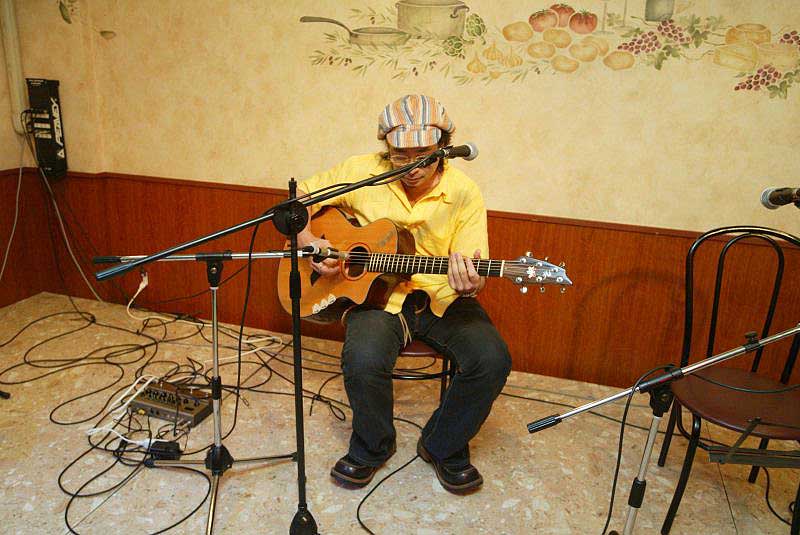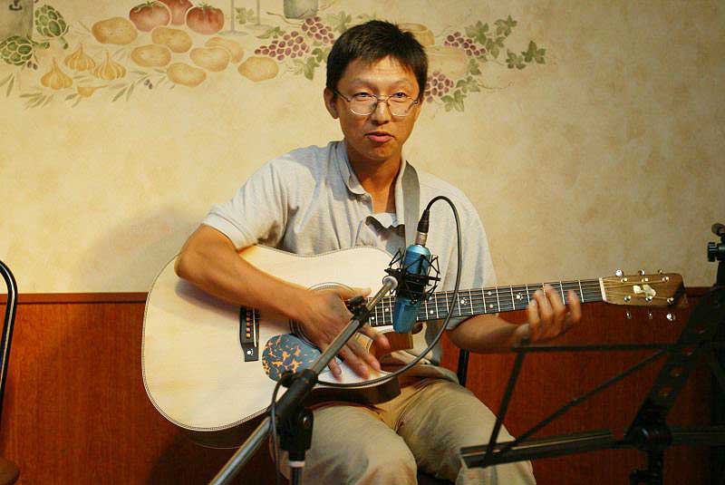 「ゆつ☆」さん。自作のギターで押尾さんの曲を演奏。 |